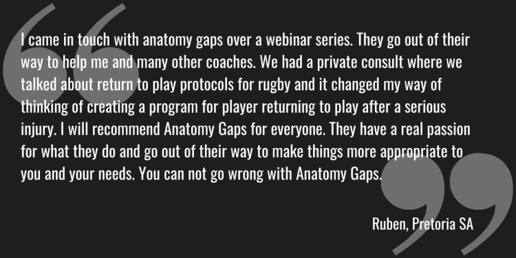 The Learning Gap: There are lots of great courses out there and after years of attending and teaching on them we’ve noticed a huge gap in the information that comes back in assignments or the implementation on the gym floor, sometimes the following hour. The truth is, a lot of courses simply don’t cater to the trainers taking the course. All our courses are heavily practical, giving attendees the time and remit to master implementation of all the anatomy gaps principles in real time, using a real client / athlete and using our user friendly programming solutions. Get online support where a coach will take you through assessing and programming an existing client. Master our concepts in your own time.